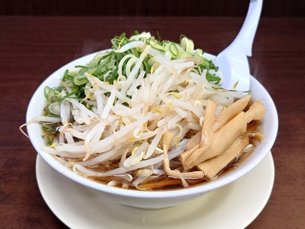 > 今日もたかばしラーメン並の麵バリカタ、ネギ&もやしダブル。