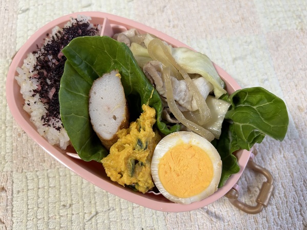 煮卵、カボチャサラダ、野菜炒め