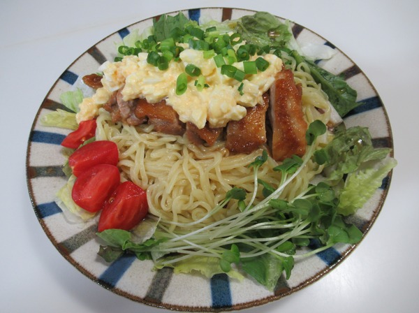 今日の麺料理は「タルタルチキン冷やし中華」です