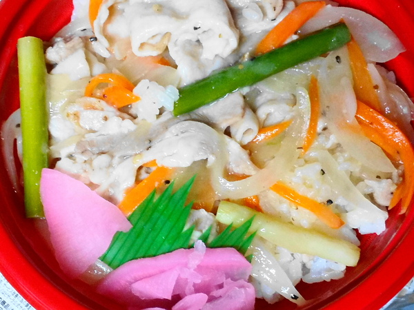 > 豚バラ塩炒め丼