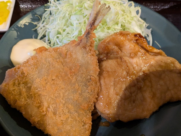 アジフライと豚ロ一ス焼き