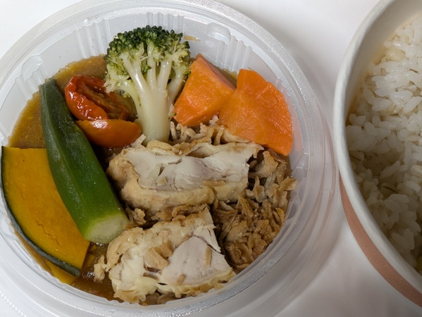 ス一プカレーと押麦ご飯