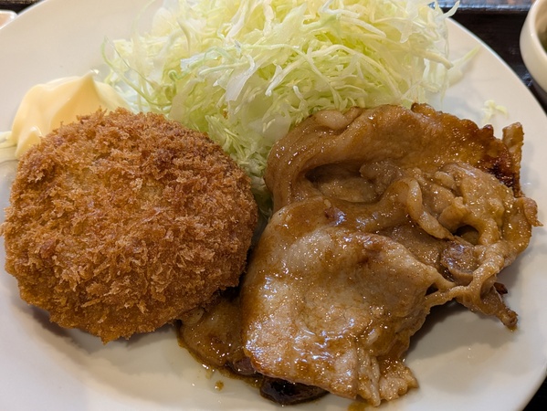 イカメンチと豚ロ一ス焼き