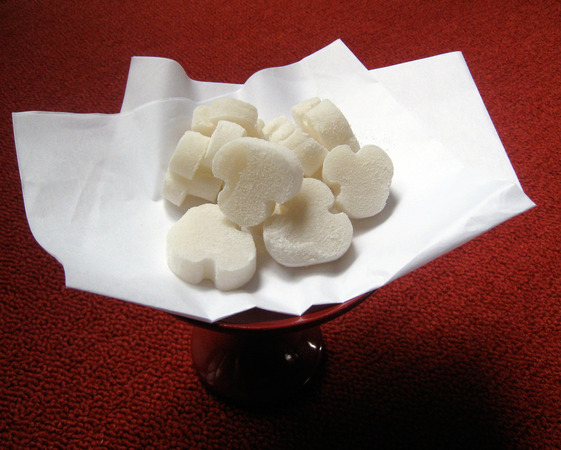 > お寺のお供えです。「庚申団子(こうしんだんご)」といいます。一応サルのカタチです。