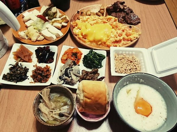 NATO きのこと白菜のスープ 市販のパン やまいもと黄身