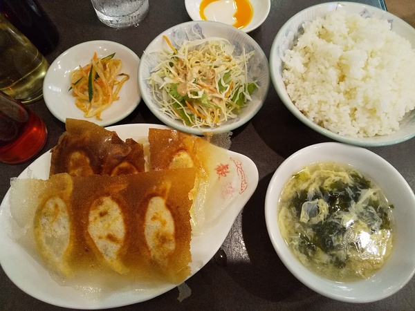名物の羽根付き餃子6個にご飯大盛り無料と太っ腹!