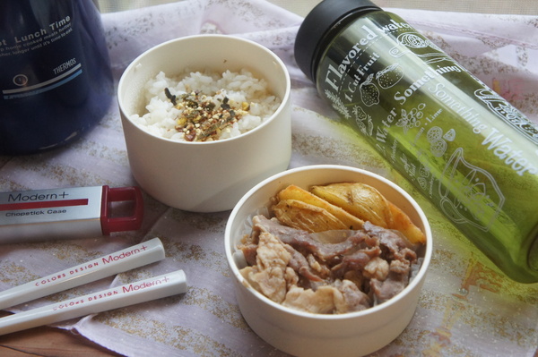 > 豚肉の甘辛炒め弁当de長男のランチ