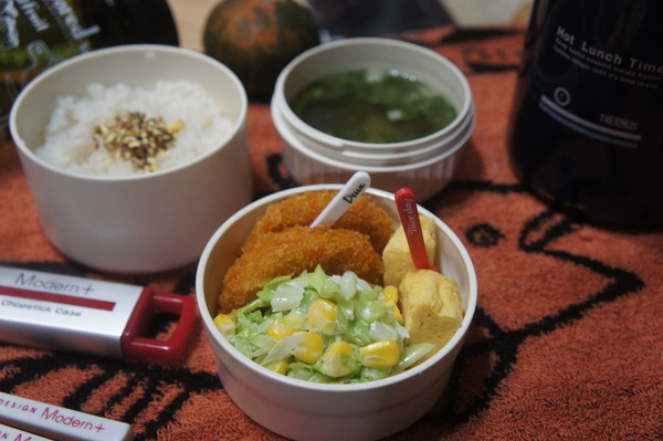 > 「コロッケ&中華スープ弁当」de長男のランチ