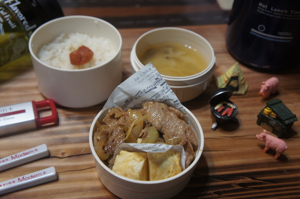 > 豚肉のテリマヨ炒め&ダーリンが作ったお味噌汁弁当
