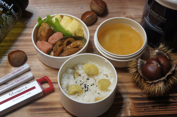> 栗ご飯&鶏胸肉の照り焼き弁当de長男のランチ