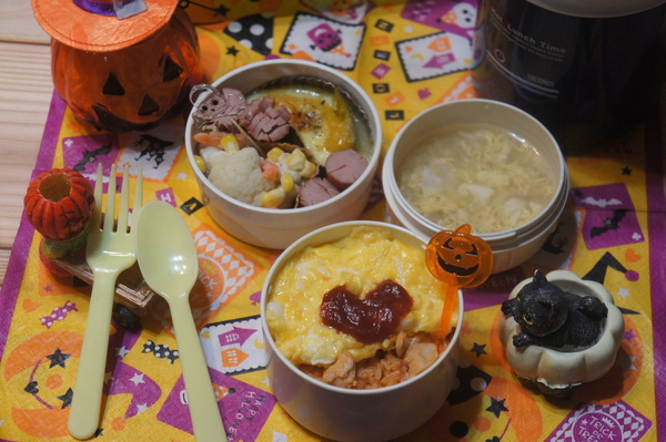 > ふわとろオムライス&南瓜のグラタン弁当de長男のランチ