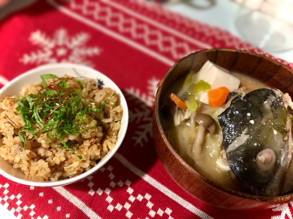 鰤の炊き込みご飯、あら汁