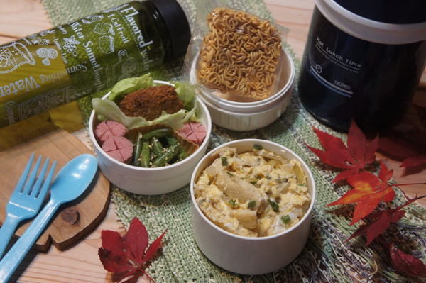 > 油揚げの卵とじ丼&インゲンの胡麻和え弁当de長男のランチ