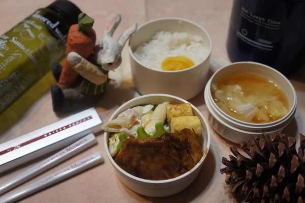 茹で鶏の焼き鳥風味&マカロニサラダ弁当de長男のランチ