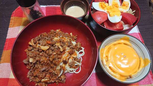 随分前に作って冷凍庫に放置してあったみーとそーすでスパ