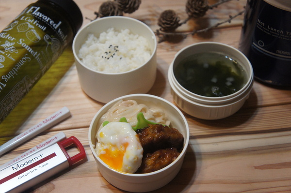 煮込みハンバーグ&モニター企画でたらこうどん弁当de長男のランチ