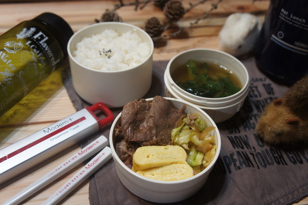 > 豚肉の甘辛炒め&出し巻き玉子弁当de長男のランチ