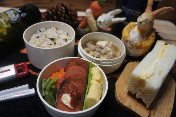 魚肉ハンバーグソテー&豚汁弁当de長男のランチ