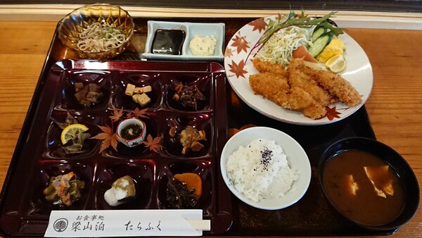 > 梁山泊たらふく@京都・福知山の舞鶴産カキフライ定食