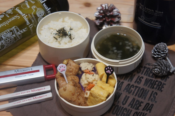 > 「ガーリック醤油チキン&わかめスープ弁当」de長男のランチ