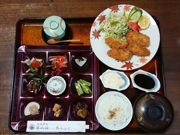 > 梁山泊たらふく@京都・福知山の舞鶴産カキフライ定食