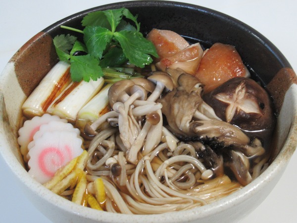 今日の麺料理は「鶏の照り焼きと焼ききのこの南蛮そば」です