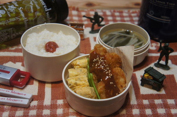 > 「デミかつ&中華スープ弁当」de長男のランチ