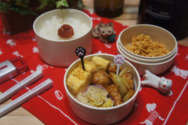 > 鶏とキャベツの甘辛味噌炒め&白菜のサラダ弁当」de長男のランチ