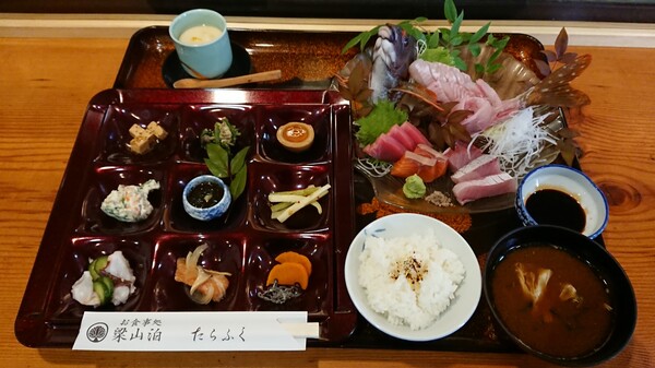 > 梁山泊たらふく@京都・福知山の刺身盛合せ定食