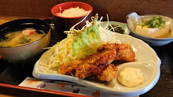 > 丹波茶屋@京都・福知山の日替わり定食(カキフライ&煮豆腐)