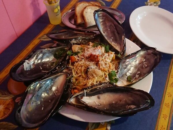 プルチネッラの宮津産ムール貝とペコリーノチーズのスパゲッティー