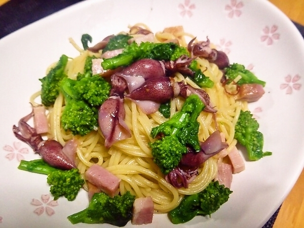 ホタルイカと菜花のペペロンチーノ