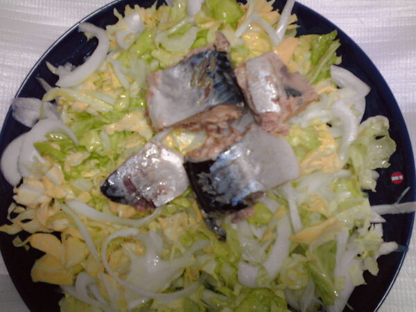 > 春キャベツと新玉ネギと鯖缶サラダ