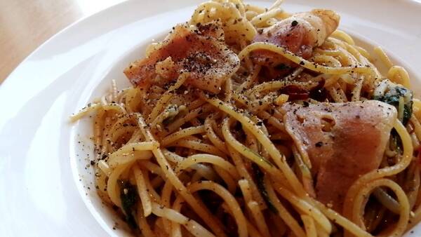ベーコンと茎野菜のペペロンチーノ カフェ&ゲームバーことぶき