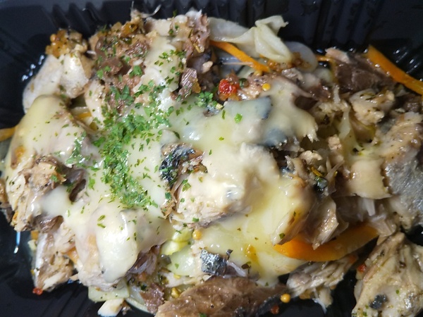 > 鯖と野菜のバジルチーズ焼き