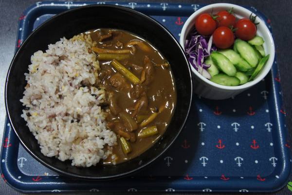> タンカレーとサラダ