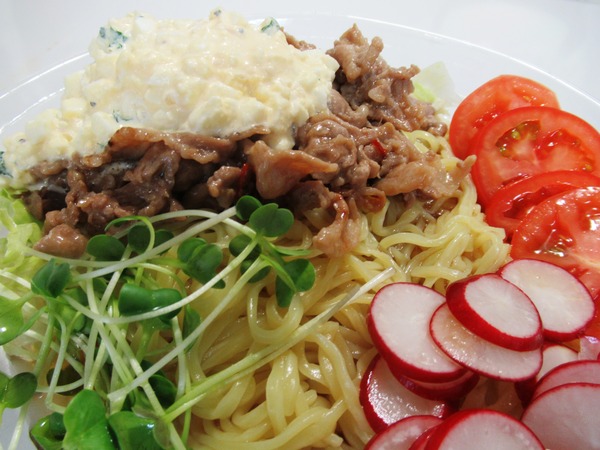 今日の麺料理は「ポークタルタル冷やし中華」です