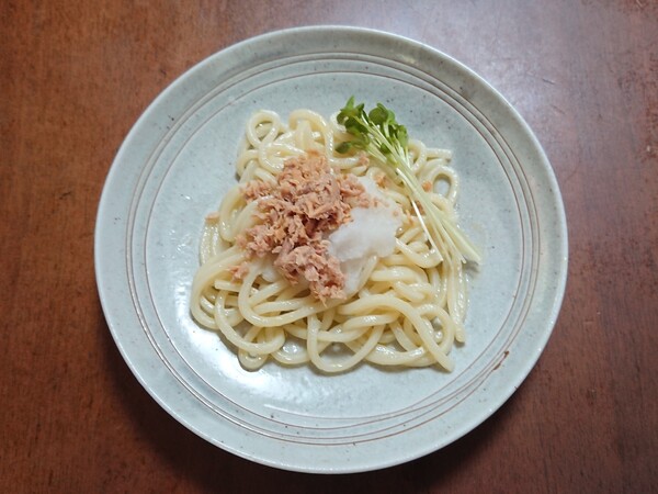 > ツナおろし焼きうどん(醤油をかけていただきます)