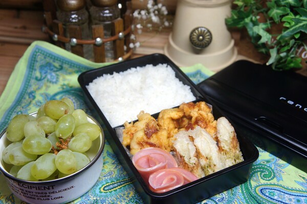 > 高校生男子、朝も食べた好物のおかずとお気に入りの果物でお弁当