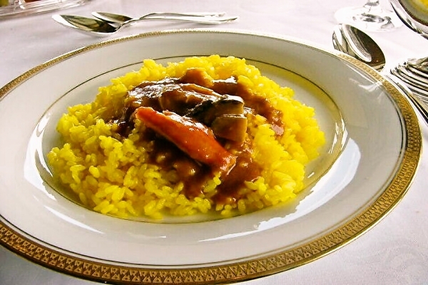 伊勢海老や鮑が入った、贅沢なカレーライスです。それぞれの素材の持ち味が活きる、ちょうど良い硬さに仕上がっています。カレーのスパイスは素材を上手く活かした上品な味わいです。