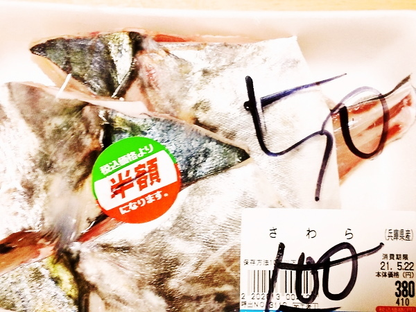 380円⇒半額⇒100円⇒50円と86%OFFの驚異の値引き!