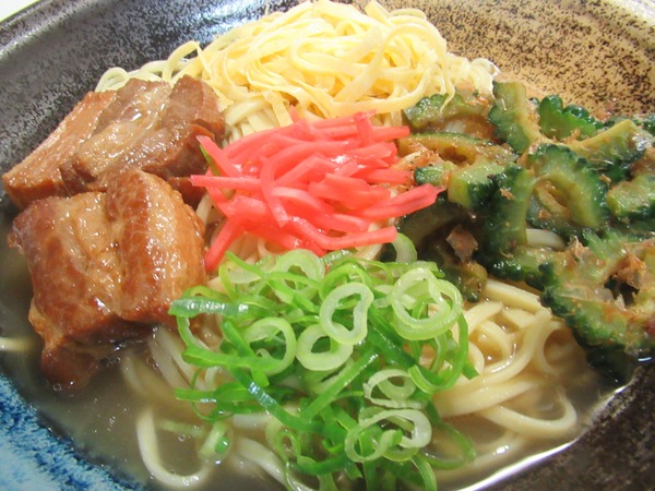 今日の麺料理は手作り角煮の「冷やし沖縄そば」です