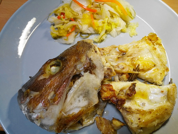 塩胡椒してオリーブオイルにニンニク入れてじっくり焼いてみた。