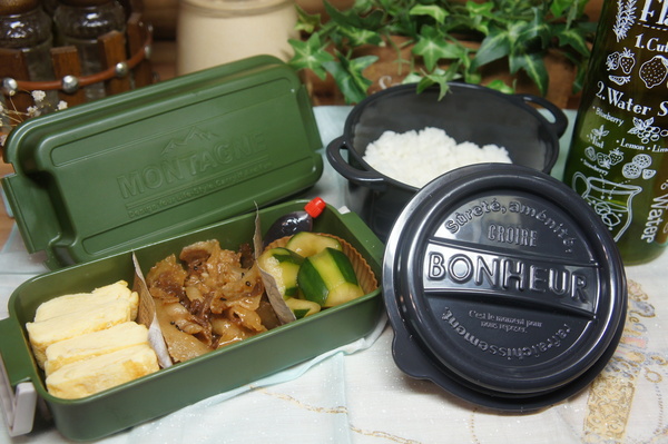 豚丼&胡瓜の浅漬け弁当de長男のランチ