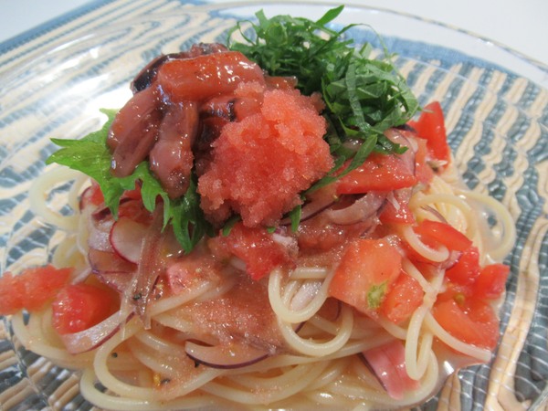 > イカ明太とトマトの和風冷製パスタ