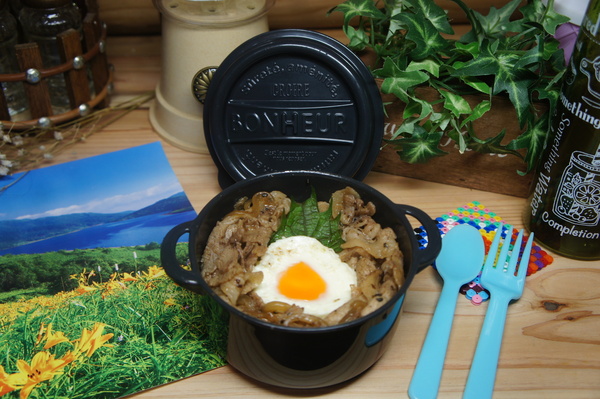 > 目玉焼きのせ豚丼弁当de長男のランチ
