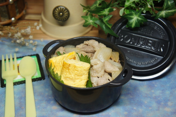豚肉の甘辛丼&玉子焼き弁当de長男のランチ