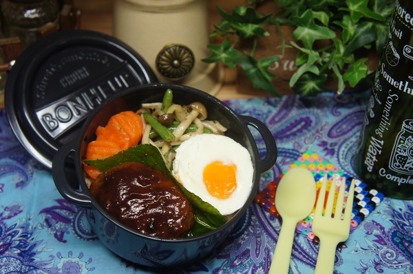 ロコモコ丼&シメジとインゲンのバターソテー弁当