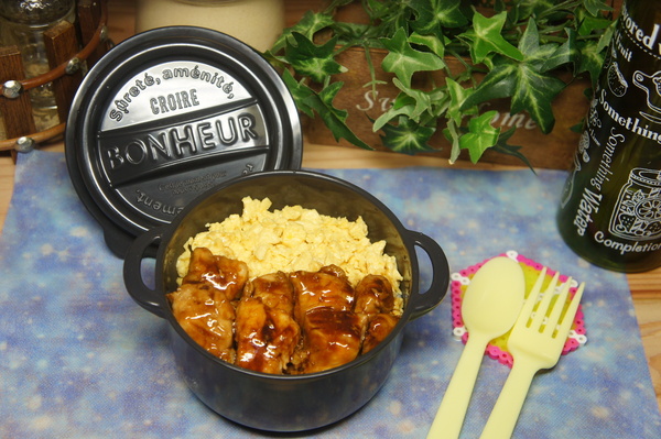 > 焼き鳥&玉子そぼろの2色丼弁当de長男のランチ