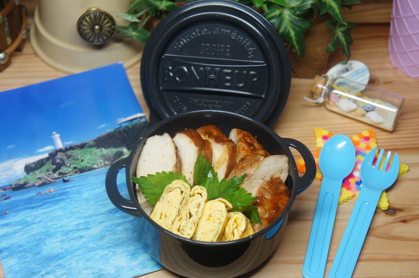 父が作った鶏叉焼&母が作った玉子焼きのっけ丼弁当de長男のランチ